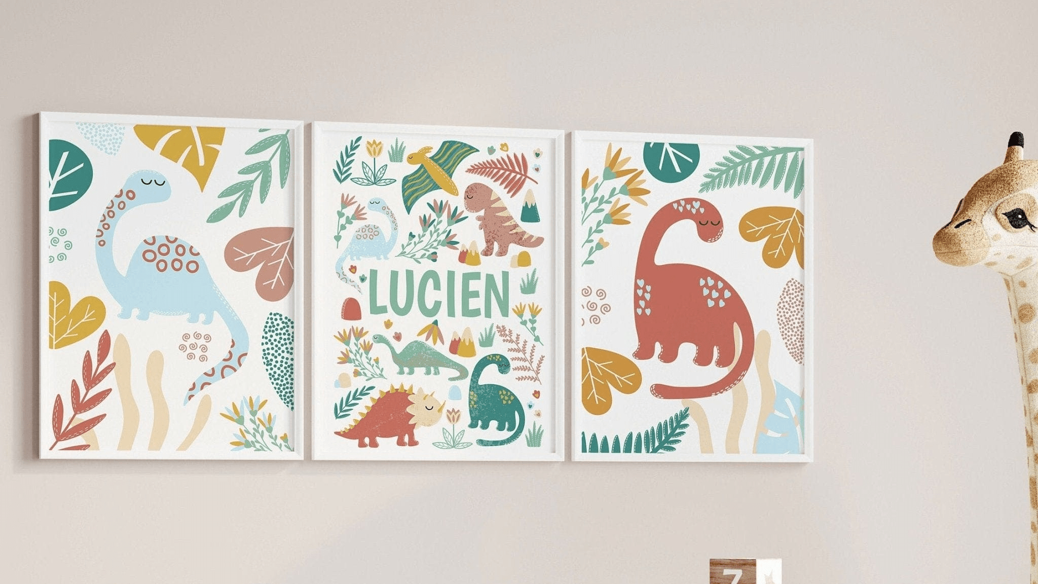 These dinosaur prints feature colours and styles that work for any child, regardless of gender. Think warm earth tones, greens, greys, and natural palettes. They're perfect if you're decorating before knowing the baby's sex, creating a shared sibling room, or simply prefer colors that aren't stereotypically pink or blue.