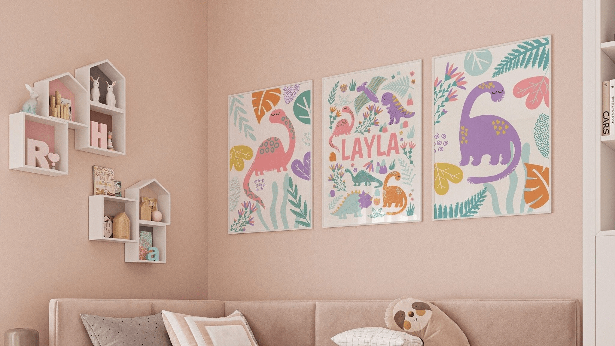 Honestly? Dinosaurs are for EVERYONE. But we've created this collection because too often, girls who love dinosaurs are told it's a "boy thing." These prints celebrate girls who love palaeontology, prehistoric creatures, and roaring good fun. The pink dinosaur collection has become beloved by hundreds of families because it says, "your interests are valid, whatever they are."