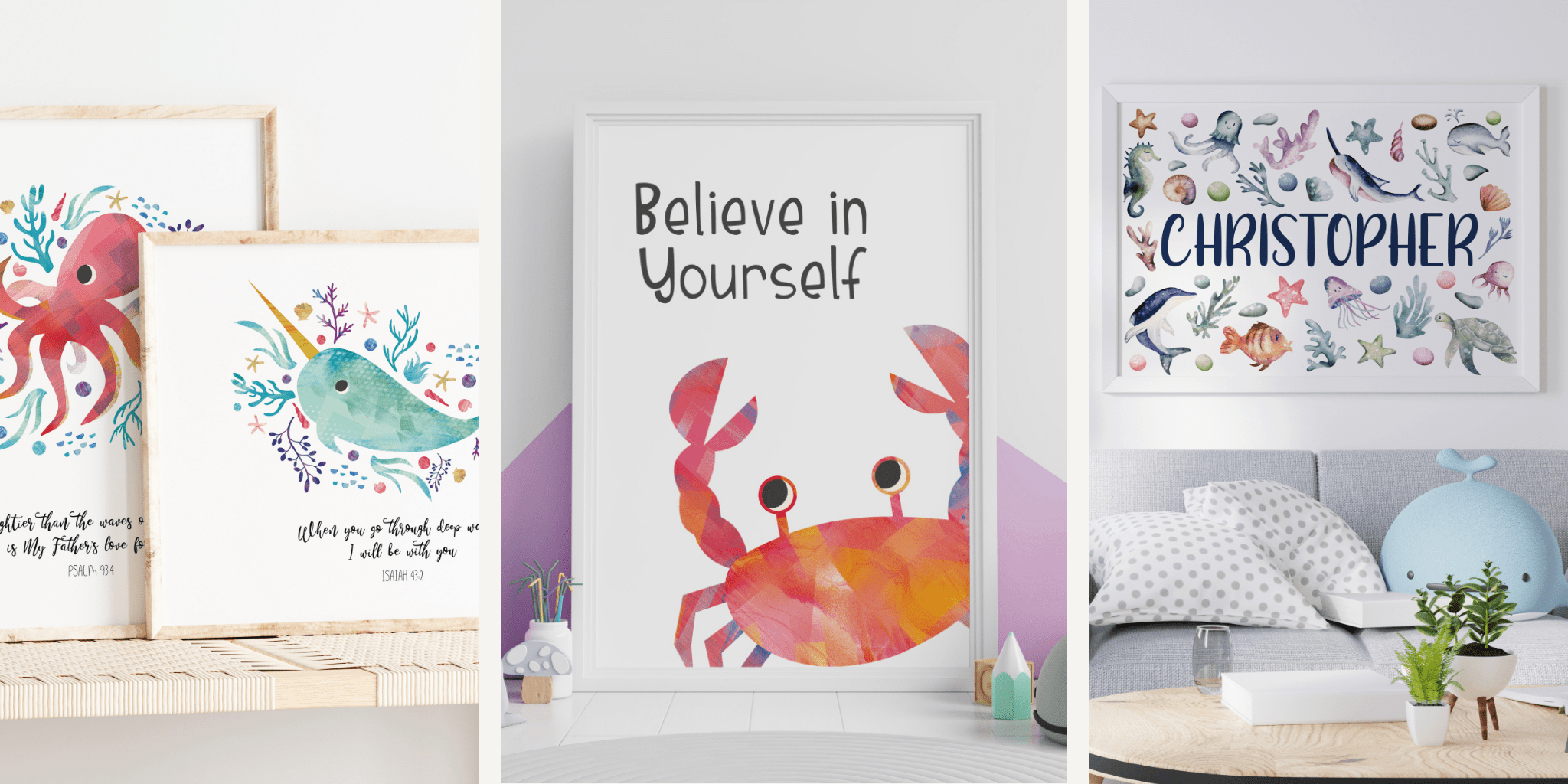 Featuring friendly sea creatures like whales, turtles, jellyfish and more, these prints are perfect for sparking curiosity and calm in nurseries, playrooms, or children’s bedrooms.